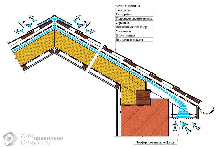 Між гідроізоляцією і утеплювачем також повинно бути влаштовано повітряний простір. Щоб уникнути додаткового вентиляційного зазору, в якості гідроізоляційного матеріалу можна застосувати супердифузійну мембрану.